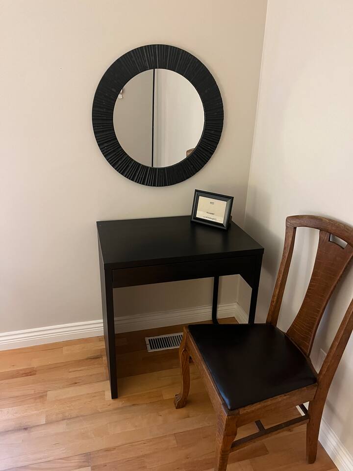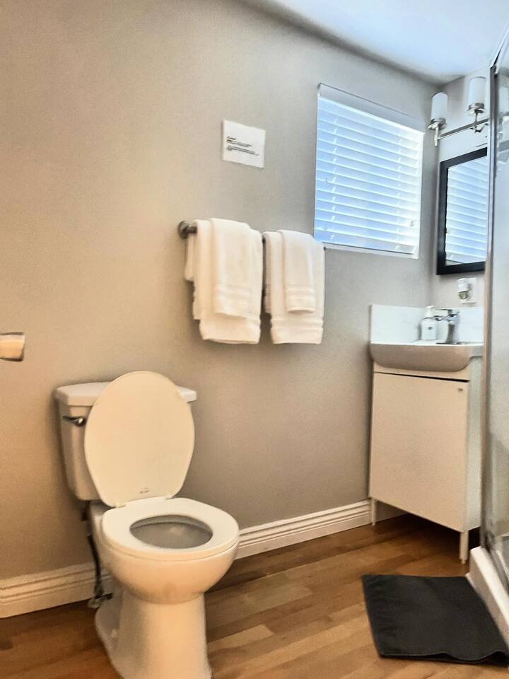 King Bedroom | Downtown Chilliwack | Walk to District 1881 Enjoy a comfortable stay in a beautiful 2-story home located in the heart of Downtown Chilliwack — just a 3-minute walk to District 1881, where you’ll find amazing shops, cafes, and restaurants! Only a 20-minute drive to Cultus Lake for outdoor fun and adventure. This listing offers a spacious King room and a designated full bathroom with walk-in shower . Access to a shared kitchen, laundry room, living room and dinning area